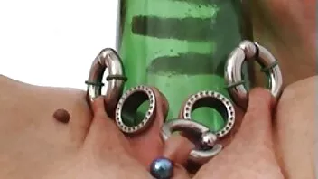 అనల్ షాంపైన్ బాటిల్ చొప్పించడం రొమ్ము మరియు కుమారులు